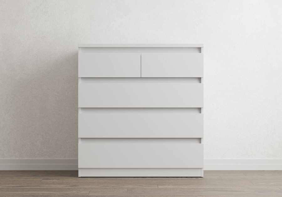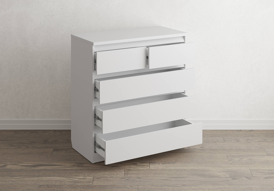 Aksel - комод без лишнего. Лаконичная скандинавская форма, четыре варианта цвета и скос под плинтус позволяют вписать его в любую комнату: спальню, гостиную, детскую или домашний кабинет и встать вплотную к стене без зазора. Надёжные шариковые направляющие обеспечивают плавное и лёгкое выдвижение ящиков без рывков и перекосов.